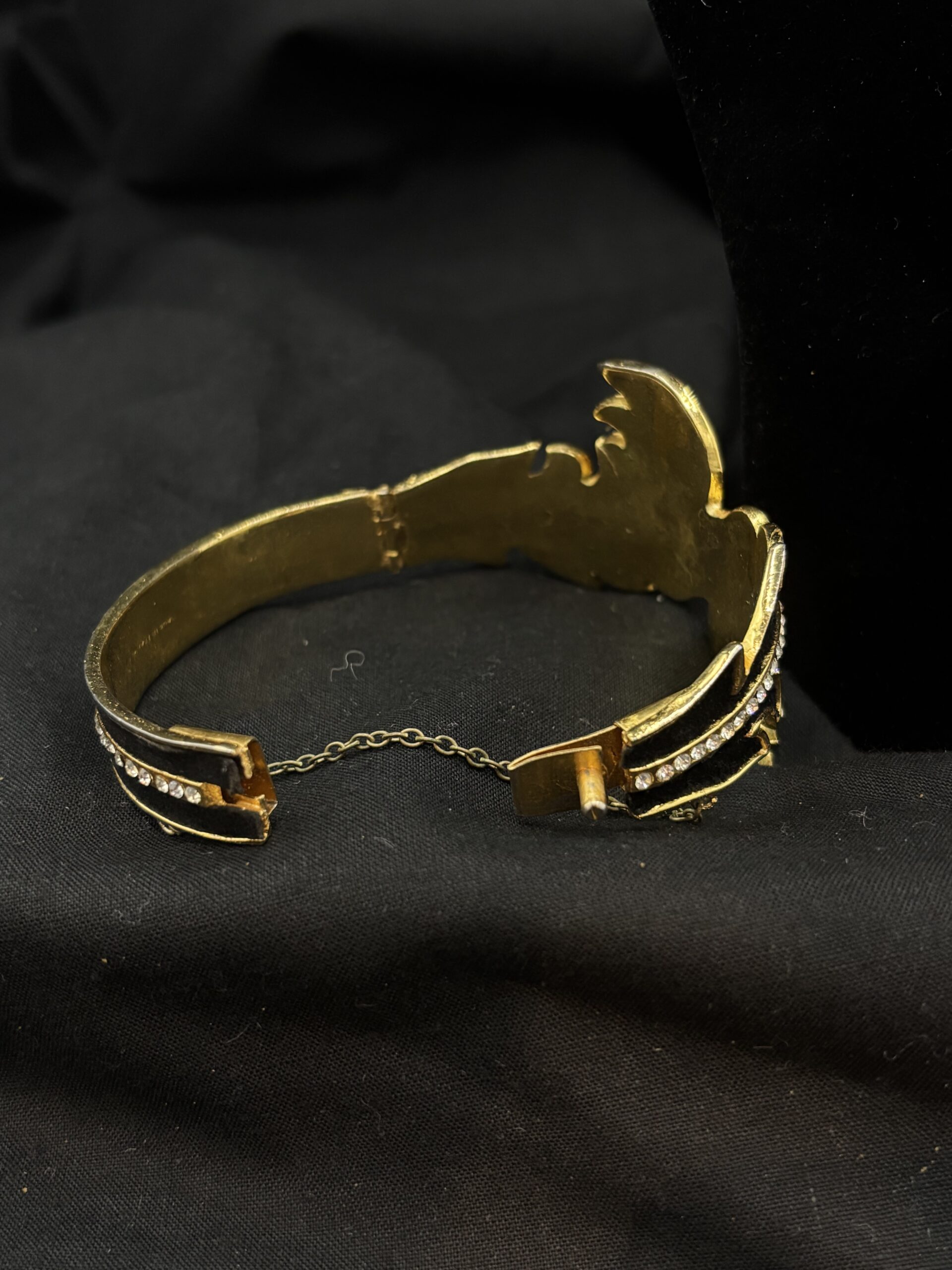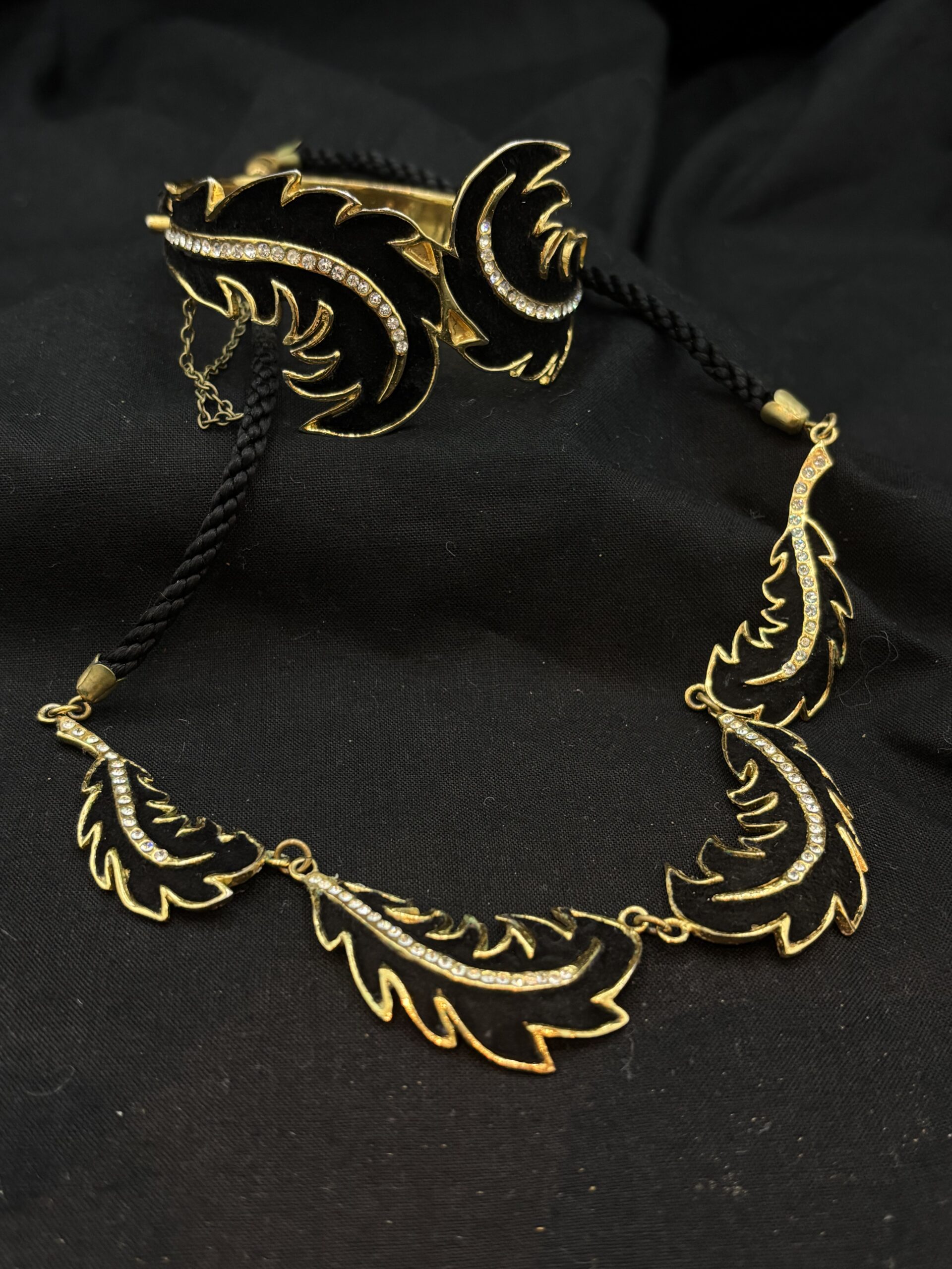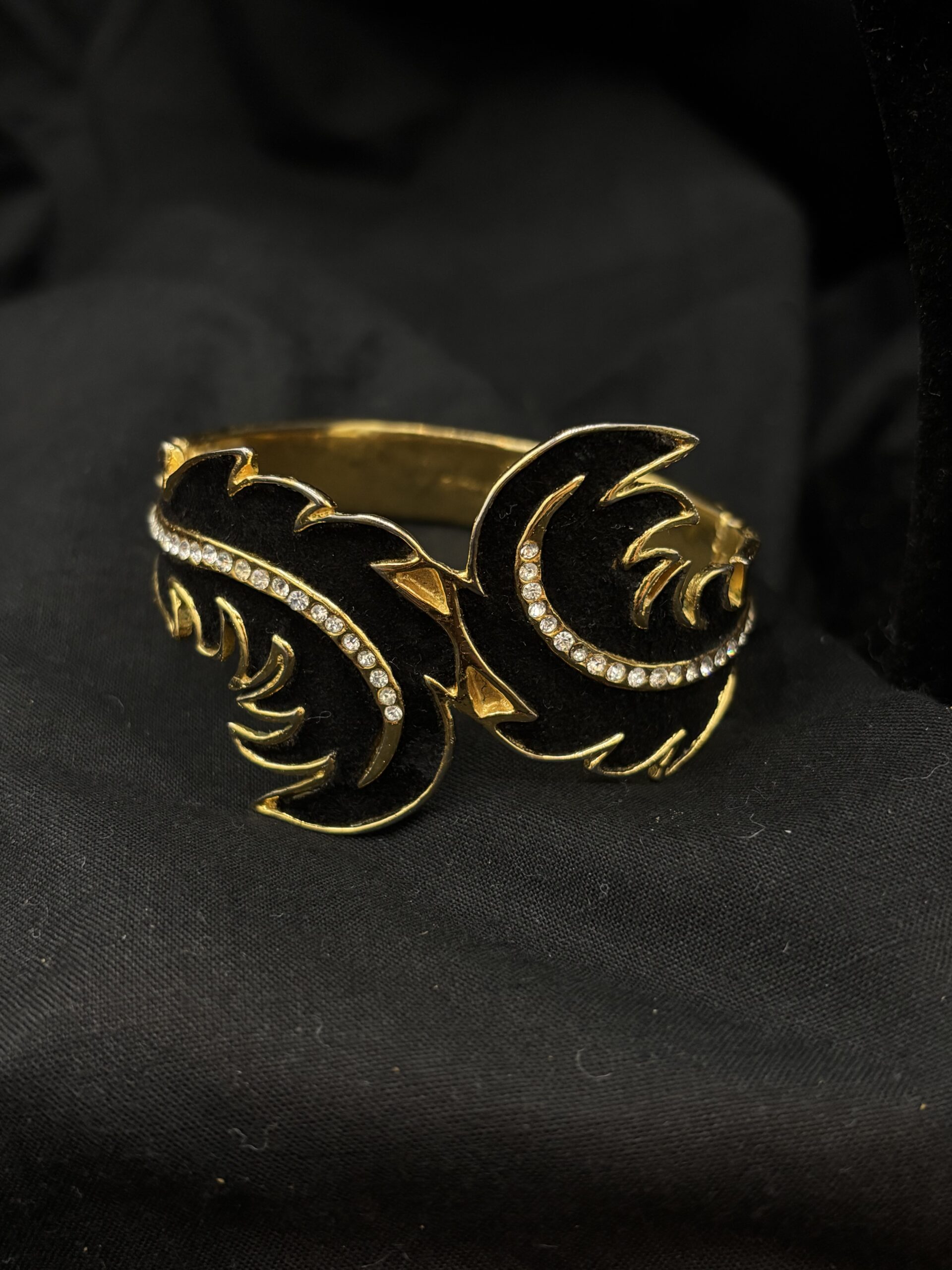 en velours noir agrémenté de strass sur métal doré