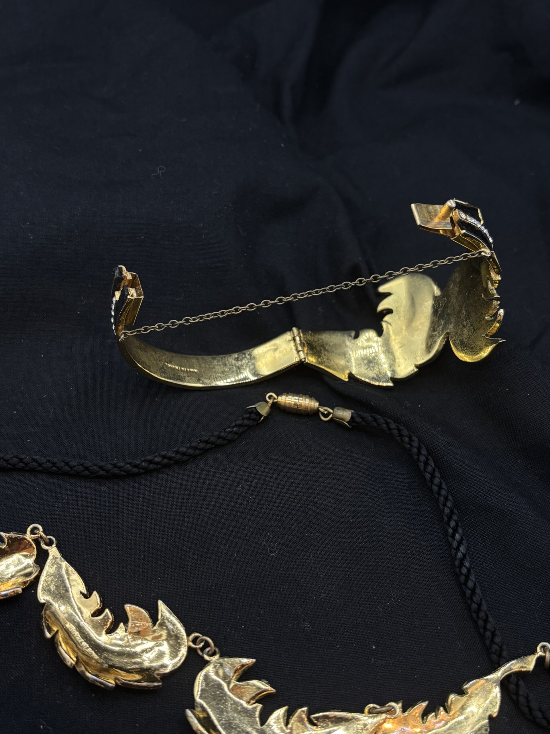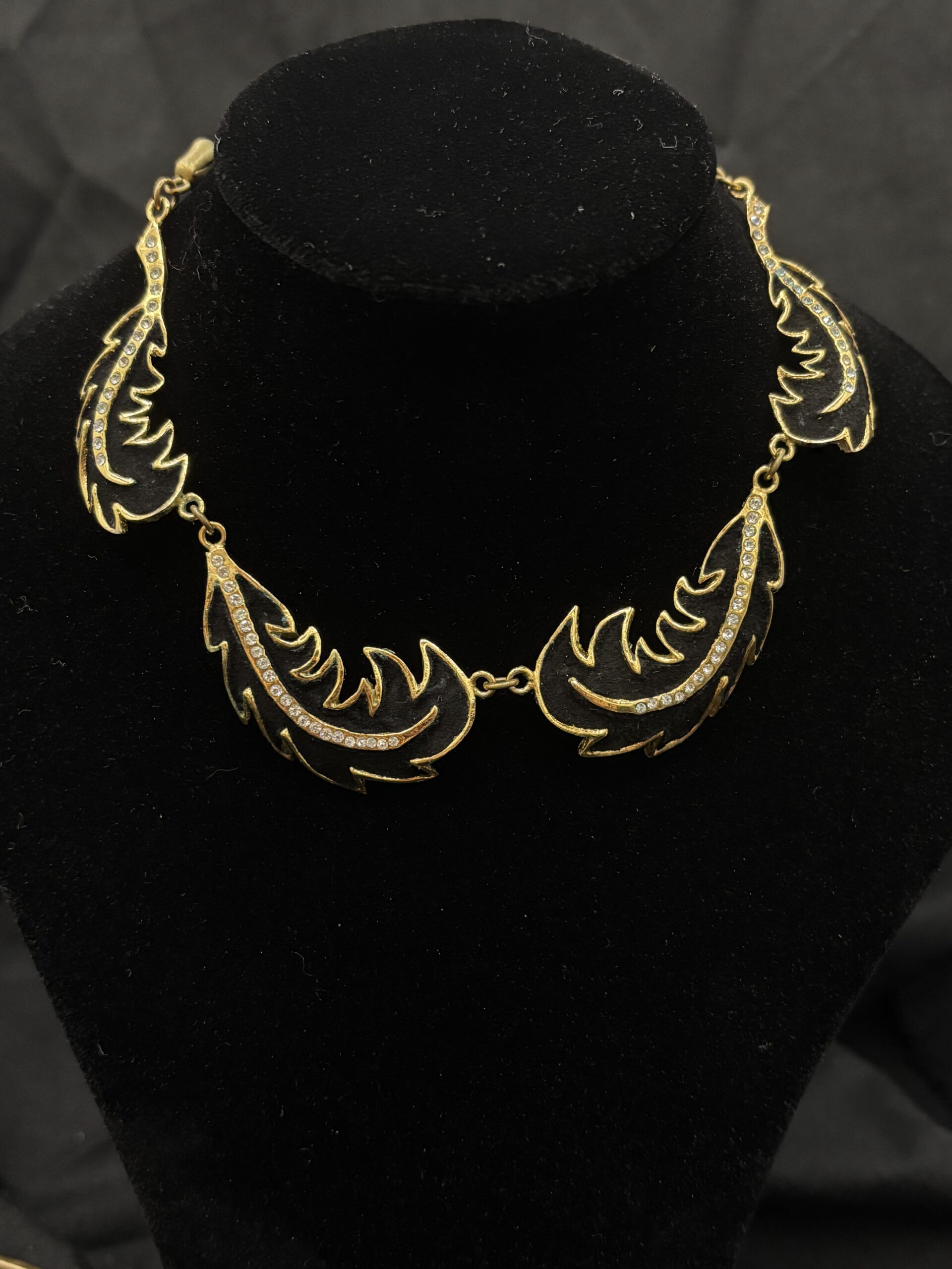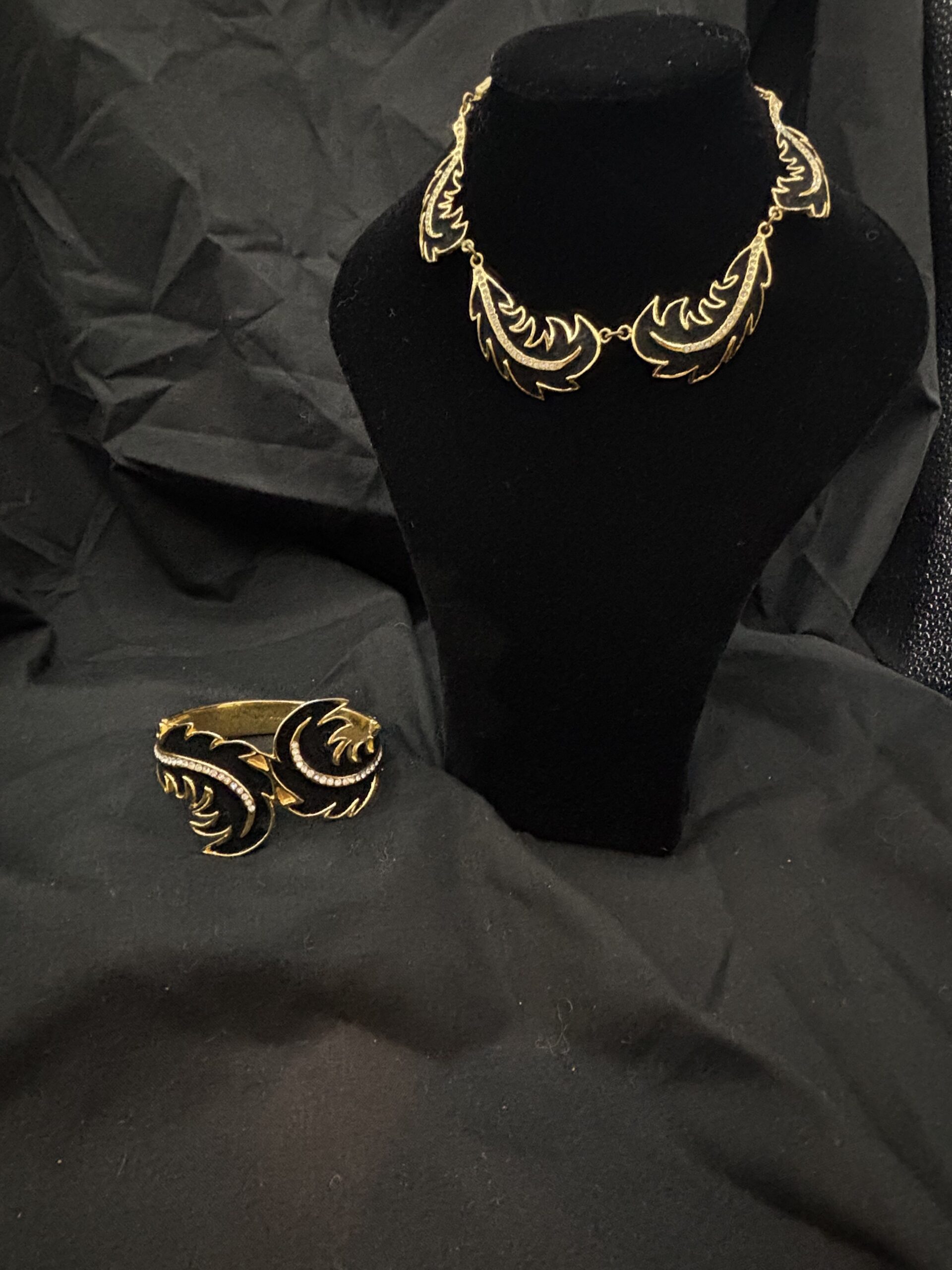 en velours noir agrémenté de strass sur métal doré
