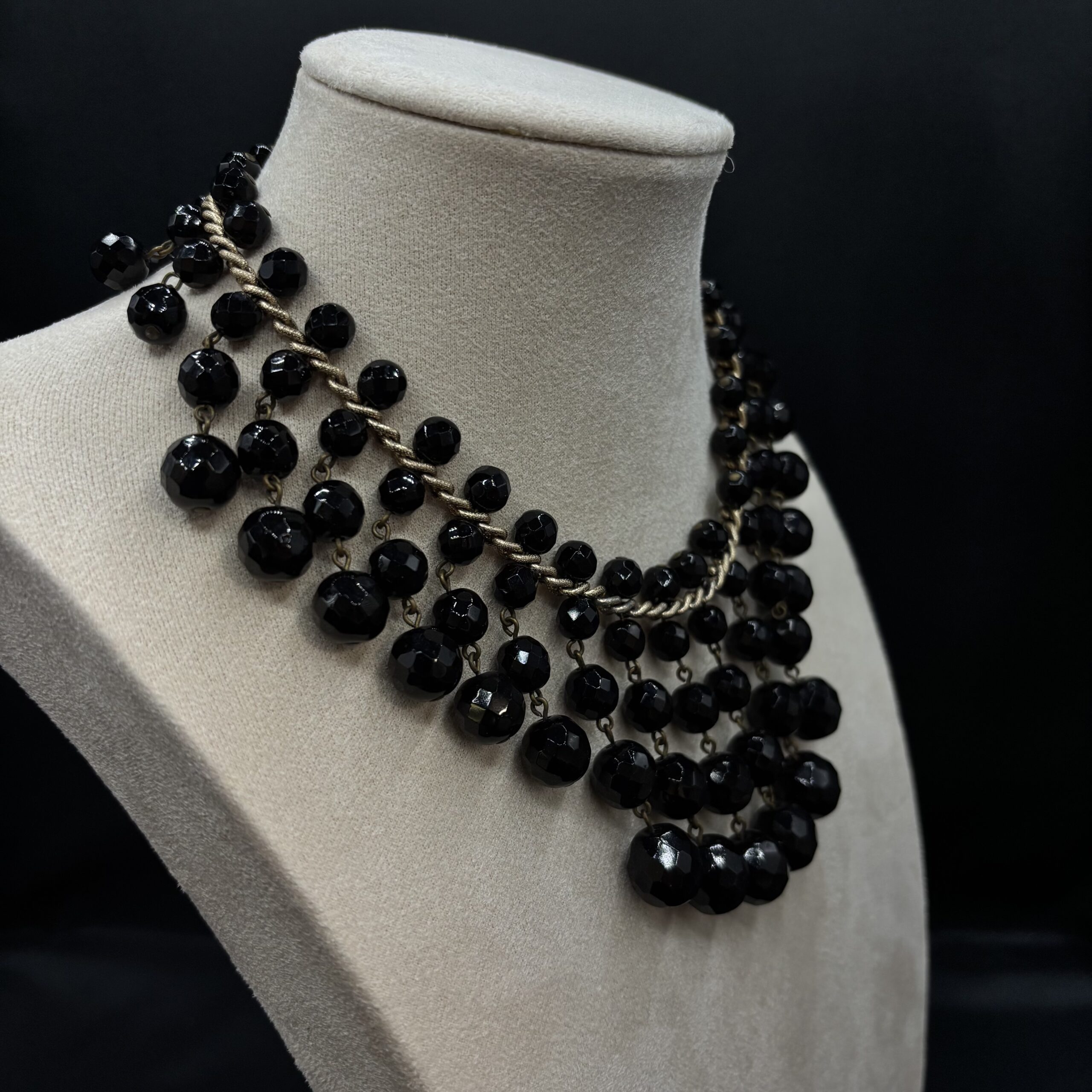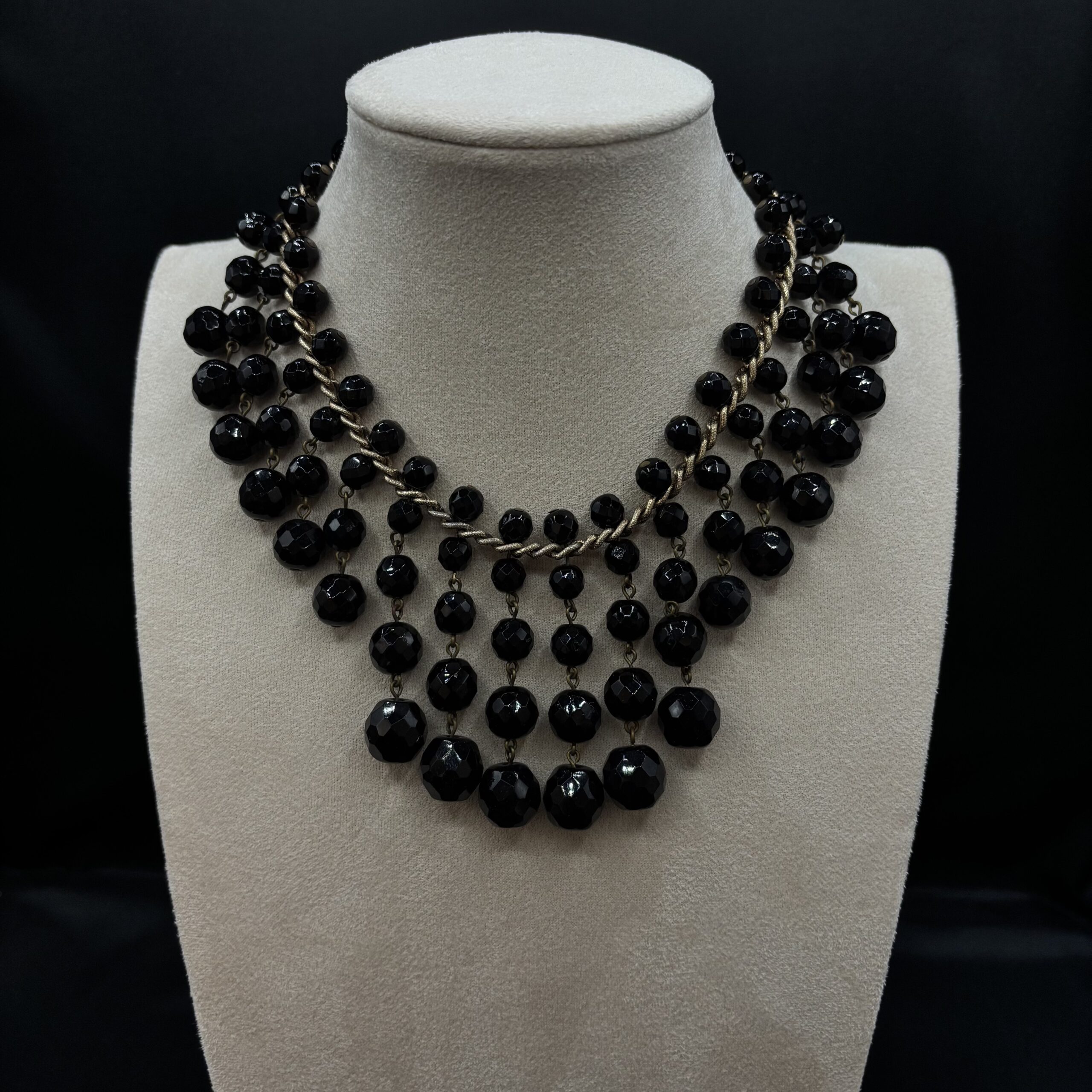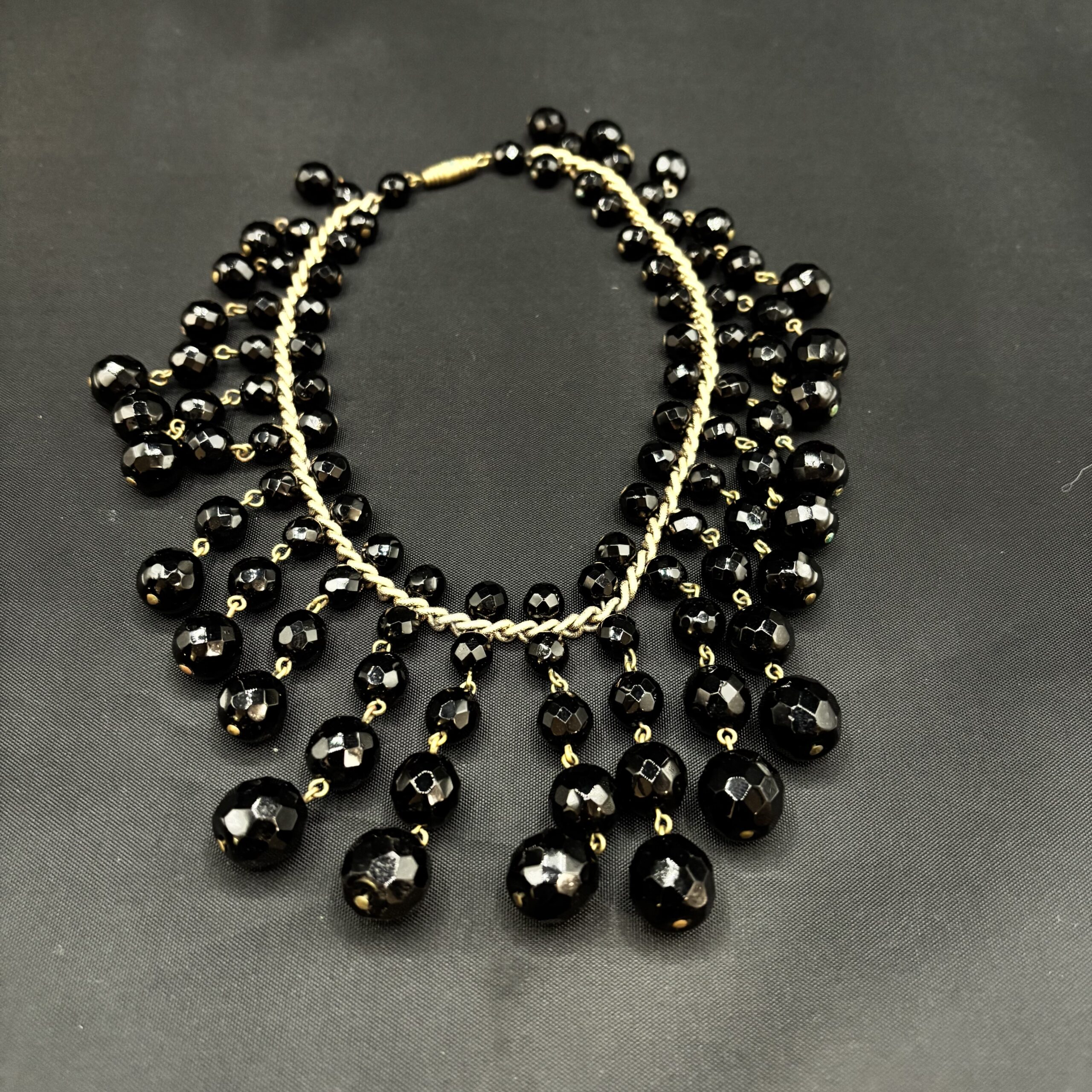 en perles de verre noires sur chaine dorée